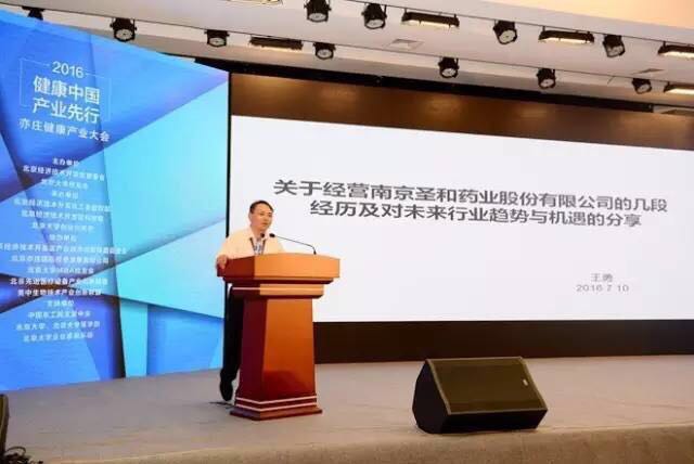 作為農工黨中央生物技術與藥學工作委員會副主任,公司王勇董事長參加了大會“健康中國?產業(yè)先行”高峰對話,并在下午的大會上作專題報告。面對主要來自醫(yī)藥、醫(yī)療器械等健康產業(yè)領域的創(chuàng)業(yè)企業(yè)創(chuàng)始人或總經理,王董分享了自己經營南京圣和藥業(yè)股份有限公司的幾段經歷及對未來行業(yè)趨勢與機遇的剖析,令在場觀眾深受啟發(fā),贏得了大家的熱烈掌聲。