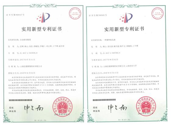 截止2018年3月,云南信通植物藥業(yè)有限公司共組織和參與申報(bào)通關(guān)藤相關(guān)技術(shù)專利17項(xiàng),其中實(shí)用新型專利10項(xiàng)全部獲批并取得專利證書,7項(xiàng)發(fā)明專利全部受理,其中已有3項(xiàng)公示并進(jìn)入實(shí)質(zhì)審查階段。