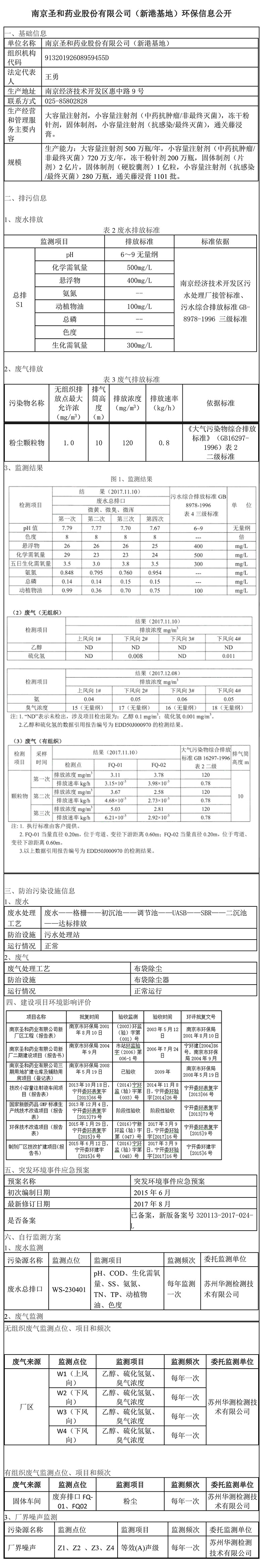 南京圣和藥業(yè)股份有限公司(新港基地)環(huán)保信息公開