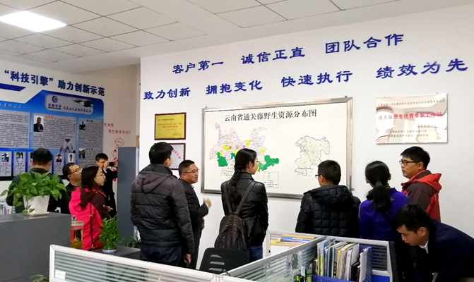 蒙自市市委組織部人才工作領導小組根據(jù)州人才辦有關州縣聯(lián)動協(xié)同機制的要求,推進人才工作見人、見事、見成效,協(xié)助州人才辦第一工作組開展實地調(diào)研。云南信通植物藥業(yè)有限公司作為紅河州第一家生物醫(yī)藥與大健康人才培養(yǎng)示范基地,是本次州縣聯(lián)動第一家調(diào)研單位。云南植物藥基地熱忱歡迎并接待了調(diào)研團蒞臨的領導一行,向來訪各級領導詳細介紹了公司當前發(fā)展情況及人才建設情況,雙方就人才建設相關話題進行了座談。州人社局專技科王俊科長對公司專業(yè)技術人才培養(yǎng)即職稱評定、專家站等平臺建設、省級突出人才特殊補貼申報等政策進行了解讀和指導。蒙自市農(nóng)科局李正旭副局長對公司加強人才團隊建設提高技術創(chuàng)新能力,尤其是加強道地藥材藥材研究,確保產(chǎn)品品質(zhì)保障方面進行了指導,對公司后續(xù)產(chǎn)業(yè)發(fā)展提出了建議;蒙自市人社局付成剛副局長就蒙自市加強非公高層人才培養(yǎng)和專家工作等平臺建設的政策進行了指導;其他領導就關注的問題進行了溝通與交流。