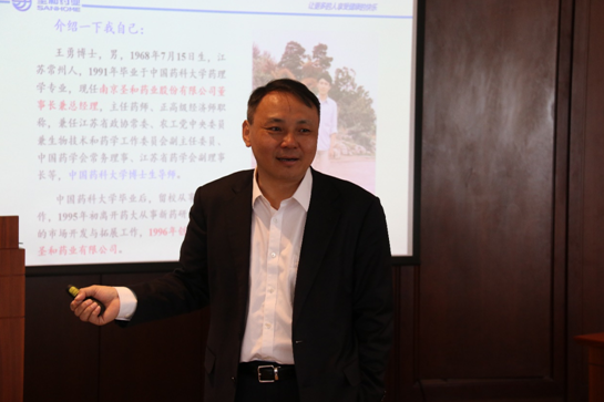 隨后,省工商聯(lián)黨組書記顧萬峰主持了以“堅守主業(yè),心無旁騖走高質(zhì)量發(fā)展之路”為主題的交流座談會。會上,王勇董事長首先為各位領導介紹了圣和的發(fā)展歷程,用圣和鮮活的成長故事,生動講述了在改革開放以來黨和政府營造的良好營商環(huán)境下,圣和是如何通過堅守主業(yè),專心做技術(shù)、一心做好藥,不斷苦練內(nèi)功、快速提升自身實力的。黨的十九大以來,民營經(jīng)濟營商環(huán)境持續(xù)改善,王勇董事長表示,面對民營經(jīng)濟將進一步大發(fā)展大繁榮的歷史性機遇,圣和將繼續(xù)專注專一,練好內(nèi)功,心無旁騖謀發(fā)展,為江蘇民營經(jīng)濟高質(zhì)量發(fā)展增光添彩。
