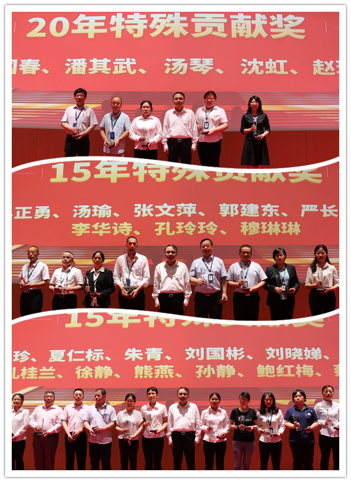 本次表彰分為優(yōu)秀團隊表彰、先進員工表彰和特殊貢獻表彰。西南代表處及華東代表處獲杰出團隊貢獻獎;先進員工表彰,分別設立“鐵血戰(zhàn)士”、“百戰(zhàn)精英”、“榮耀軍魂”、“璀璨之星”四個獎項,肖靜、張巍巍等共187人分獲獎項,其中鐵血戰(zhàn)士130人;百戰(zhàn)精英34人;榮耀軍魂5人;璀璨之星18人。特殊貢獻獎表彰,根據(jù)司齡,分為10年、15年、20年特殊貢獻獎三個部分,本次授予賈勇、張翠華等147人特殊貢獻榮譽稱號。