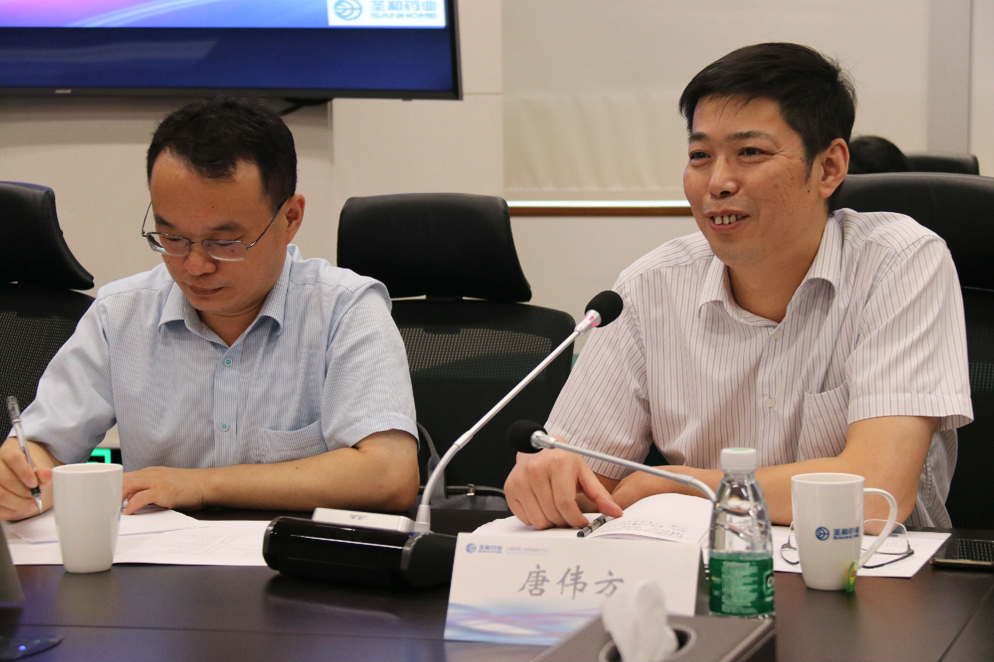 首先,許風(fēng)國副院長對召開本次研討會的目的意義作了介紹,對基地研究生培養(yǎng)情況進(jìn)行了梳理,希望今后“以項(xiàng)目為依托”不斷加強(qiáng)研究生深度聯(lián)合培養(yǎng)。趙立文博士代表公司對校方專程到企業(yè)座談交流表示熱烈歡迎,并對圣和藥業(yè)研發(fā)工作及基地研究生工作站的情況作了介紹。唐偉方處長簡要介紹了中國藥科大學(xué)國家生命科學(xué)與技術(shù)人才培養(yǎng)基地校企聯(lián)合培養(yǎng)研究生(42校企聯(lián)合培養(yǎng)研究生)現(xiàn)狀及發(fā)展,闡述了當(dāng)前突出問題和后期工作思路。