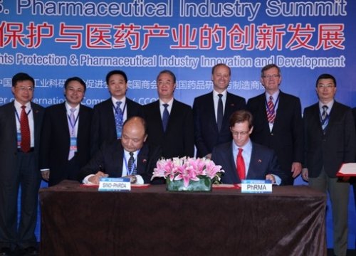 中國(guó)醫(yī)藥工業(yè)科研開(kāi)發(fā)促進(jìn)會(huì)(中國(guó)藥促會(huì))和美國(guó)藥物研發(fā)與制造商協(xié)會(huì)(Pharmaceutical Research andManufactures of America,PhRMA)共同簽署了《關(guān)于加強(qiáng)知識(shí)產(chǎn)權(quán)保護(hù)、促進(jìn)醫(yī)藥產(chǎn)業(yè)創(chuàng)新發(fā)展、提高社會(huì)公眾健康水平的聯(lián)合宣言》。