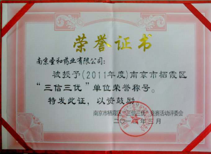 本網(wǎng)訊 3月10日,南京市棲霞區(qū)2010-2011年度“三信三優(yōu)”競(jìng)賽活動(dòng)總結(jié)表彰大會(huì)在棲霞區(qū)政府會(huì)堂隆重召開,會(huì)上,我公司被授予“三信三優(yōu)”單位稱號(hào)。