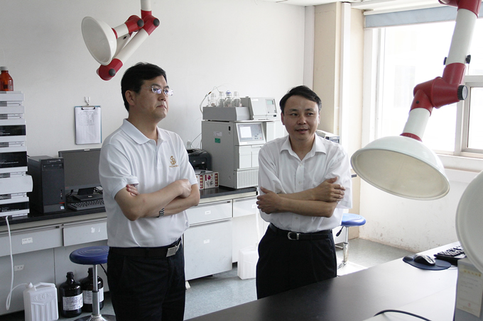 本網(wǎng)訊 8月2日,國(guó)家食品藥品監(jiān)督管理總局藥品化妝品注冊(cè)管理司王立豐司長(zhǎng)、藥品審評(píng)中心馮毅主任助理,中國(guó)醫(yī)藥工業(yè)科研開發(fā)促進(jìn)會(huì)宋瑞霖會(huì)長(zhǎng)、陳昌雄常務(wù)副秘書長(zhǎng)、國(guó)際部黃毅副主任等一行9人在省食品藥品監(jiān)督管理局胡曉抒局長(zhǎng)陪同下,來我司考察。