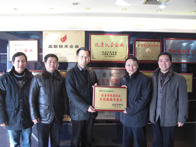 為深入推進(jìn)全市民營(yíng)企業(yè)文化建設(shè),市工商聯(lián)在全市民營(yíng)企業(yè)中開(kāi)展了民營(yíng)企業(yè)文化建設(shè)示范點(diǎn)創(chuàng)建活動(dòng)。經(jīng)企業(yè)自愿申報(bào),市、區(qū)工商聯(lián)或商會(huì)推薦,市工商聯(lián)深入調(diào)研考察,市工商聯(lián)黨組于近日研究決定,授予我司等110家企業(yè)為“南京市民營(yíng)企業(yè)文化建設(shè)示范點(diǎn)”。1月9日,南京市委統(tǒng)戰(zhàn)部副部長(zhǎng)、市工商聯(lián)黨組書記毛衛(wèi)華一行親自來(lái)我司授牌,王勇董事長(zhǎng)熱情接待了毛書記一行,并向來(lái)賓介紹了公司企業(yè)文化建設(shè)情況。