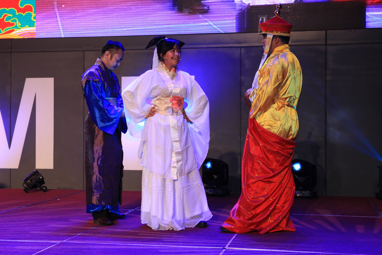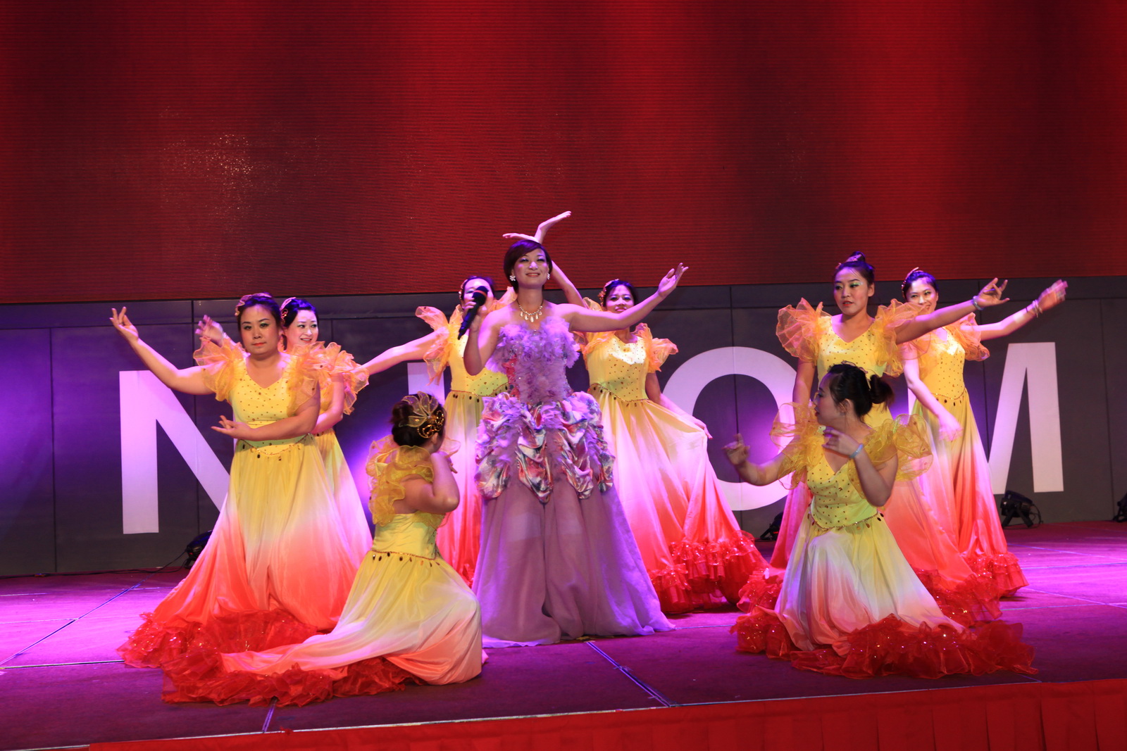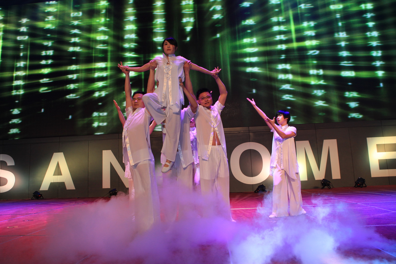 舞蹈《好運(yùn)來(lái)》拉開(kāi)了演出的序幕,視頻短片《光耀未來(lái)》寓意著,“榮光耀,千里之行始今朝,展未來(lái),萬(wàn)里揚(yáng)帆再啟航”。由吉遼大區(qū)孫瑤等帶來(lái)的歌伴舞《相信》和來(lái)自南京德云社的兩位著名相聲演員,給大家?guī)?lái)了不一樣的聽(tīng)覺(jué)享受。江蘇大區(qū)的童沅等帶來(lái)的舞蹈串燒,展示了圣和員工的活力和朝氣。研發(fā)中心的視頻互動(dòng)《爸爸去哪兒了》,喚起了大家無(wú)限的親情感受。江蘇省歌舞團(tuán)演員奉上的民歌《越來(lái)越好》和《在希望的田野上》,增添了紅紅火火的氣氛。黑龍江大區(qū)的張巍巍、郭強(qiáng)兩人合作的小品《吃面》,給大家?guī)?lái)了不少樂(lè)子。制劑分廠三車(chē)間任詠秋的歌伴舞《望鄉(xiāng)》,唱出了無(wú)盡的鄉(xiāng)情。奇妙的《水晶芭蕾》,給大家?guī)?lái)了不一樣的觀賞視覺(jué)。云貴大區(qū)的小品《新白蛇傳》中插播的廣告詞,讓圣和人記憶猶新。研發(fā)中心何承華帶來(lái)了歌曲《女人花》,盡顯柔情感染了全場(chǎng)。供應(yīng)鏈徐明秀、滿(mǎn)金萍帶來(lái)快板表演《供應(yīng)鏈之聲》,道出了供應(yīng)鏈的心聲。京劇樣板戲串燒、制劑分廠一車(chē)間崔紅俊的獨(dú)唱《紛飛》,讓大家一飽耳福。上海大區(qū)譚秋艷等的現(xiàn)代舞《思韻》,毫不遜色專(zhuān)業(yè)型的舞蹈演員,輕盈的舞姿散發(fā)著時(shí)代的氣息。置業(yè)公司的小合唱《真心英雄》,掀起了本場(chǎng)晚會(huì)的高潮,王勇董事長(zhǎng)也被邀登臺(tái)同唱。北京大區(qū)的舞蹈《好日子》落下了整場(chǎng)晚會(huì)的帷幕,寓意著新的一年我們迎來(lái)2014,讓我們盛情邀約好日子的到來(lái)。