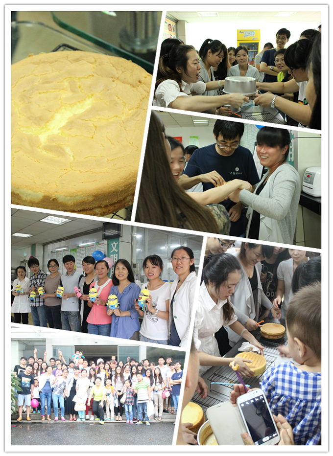 在等待烘烤的過程中,每個參賽者都既緊張又興奮。為自己第一次的烘焙成果激動萬分,為是否能真正成功為家人做出第一個蛋糕而擔(dān)心不已。經(jīng)過4個小時的努力,我們精心制作的DIY蛋糕終于新鮮出爐。蛋糕一出爐,降溫還沒有結(jié)束就被圍觀的吃貨們搶個精光。拿在手上雖燙,吃在嘴里卻是那么的甜蜜與滿足,看到一張張笑臉,頓時覺得原來我們可以這么的天真與不羈。就像孩子得到玩具一樣那么的開心與自豪。DIY蛋糕比賽結(jié)束,孩子們也滿載而歸。因?yàn)榈案庹T人,出爐就遭哄搶,我們的比賽也無法評出一二三等獎,為了犒勞大家的辛苦努力,由李總給所有參賽者頒發(fā)禮品。最后由李總代表我們所有人員感謝蛋糕師的辛苦與指點(diǎn)。