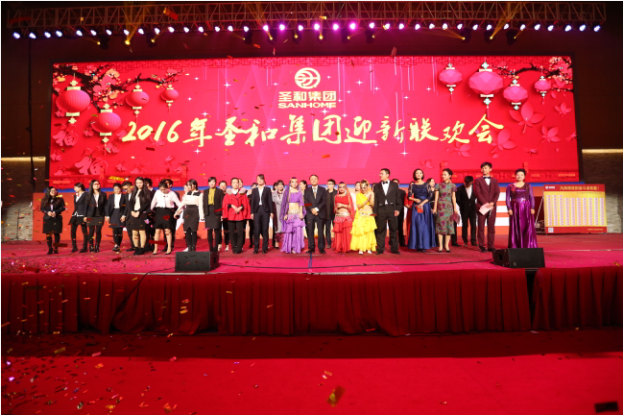 本網(wǎng)訊 2015年12月31日下午,冬日的南京寒氣襲人,然而地處河西奧體新城的金陵會議中心中華廳內(nèi)卻春意正濃,巨幅LED屏幕上氣勢磅礴的“龍嘯九天”動畫震撼全場,一首亮堂堂的開場歌舞《開門紅》響徹整個大廳,“紅四方,大風(fēng)光!”2016年圣和集團(tuán)迎新聯(lián)歡會在這里正式拉開帷幕。本次聯(lián)歡會將對受表彰員工的頒獎穿插在節(jié)目中進(jìn)行,使一千多名圣和奮斗者們在盡情欣賞歌舞的節(jié)目同時,能深切感受到圣和文化傳遞出來的價值觀。