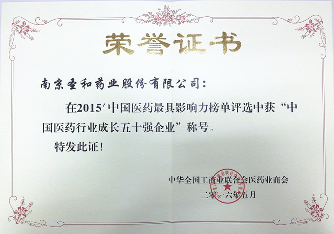 本網訊 2016年5月11-13日,全國工商聯醫(yī)藥業(yè)商會第三次會員(代表)大會暨 2015′中國醫(yī)藥行業(yè)最具影響力榜單發(fā)布會在重慶市麗笙世嘉酒店召開。本次活動由全國工商聯醫(yī)藥商會、中國醫(yī)藥報、中國院長雜志社、重慶市經濟與信息化委員會、重慶市巴南區(qū)人民政府主辦。會上揭曉了2015′中國醫(yī)藥行業(yè)最具影響力榜單,南京圣和藥業(yè)股份有限公司同時榮獲"2015中國醫(yī)藥制造業(yè)百強企業(yè)"和"中國醫(yī)藥制造業(yè)成長五十強企業(yè)"兩項榮譽稱號。這些榮譽再一次折射出圣和藥業(yè)的品牌影響力和行業(yè)地位。