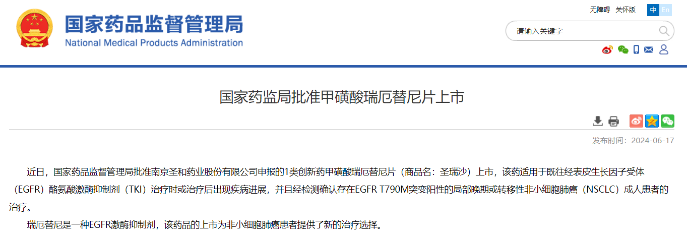 2024年06月17日,國(guó)家藥品監(jiān)督管理局(NMPA)官方網(wǎng)站公示,南京圣和藥業(yè)股份有限公司自主...